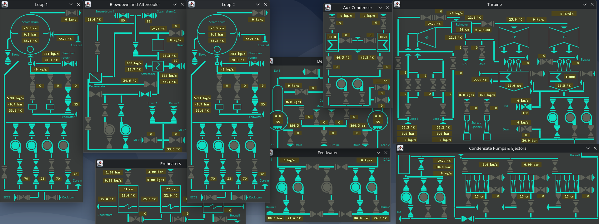 Operating power plants requires a detailed understanding on how different systems of the plant interact with each other, how water and steam are used to transfer energy and the limitation of control loops. This simulator allows you to try to start up the Chernobyl RBMK reactor, sync it to the grid and experience the complexity of power plant operation.